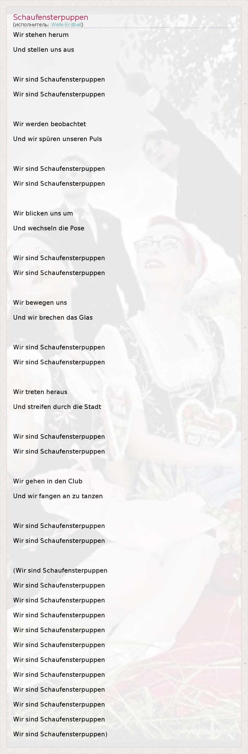 А как ты думаешь, о чем песня "Schaufensterpuppen" ?