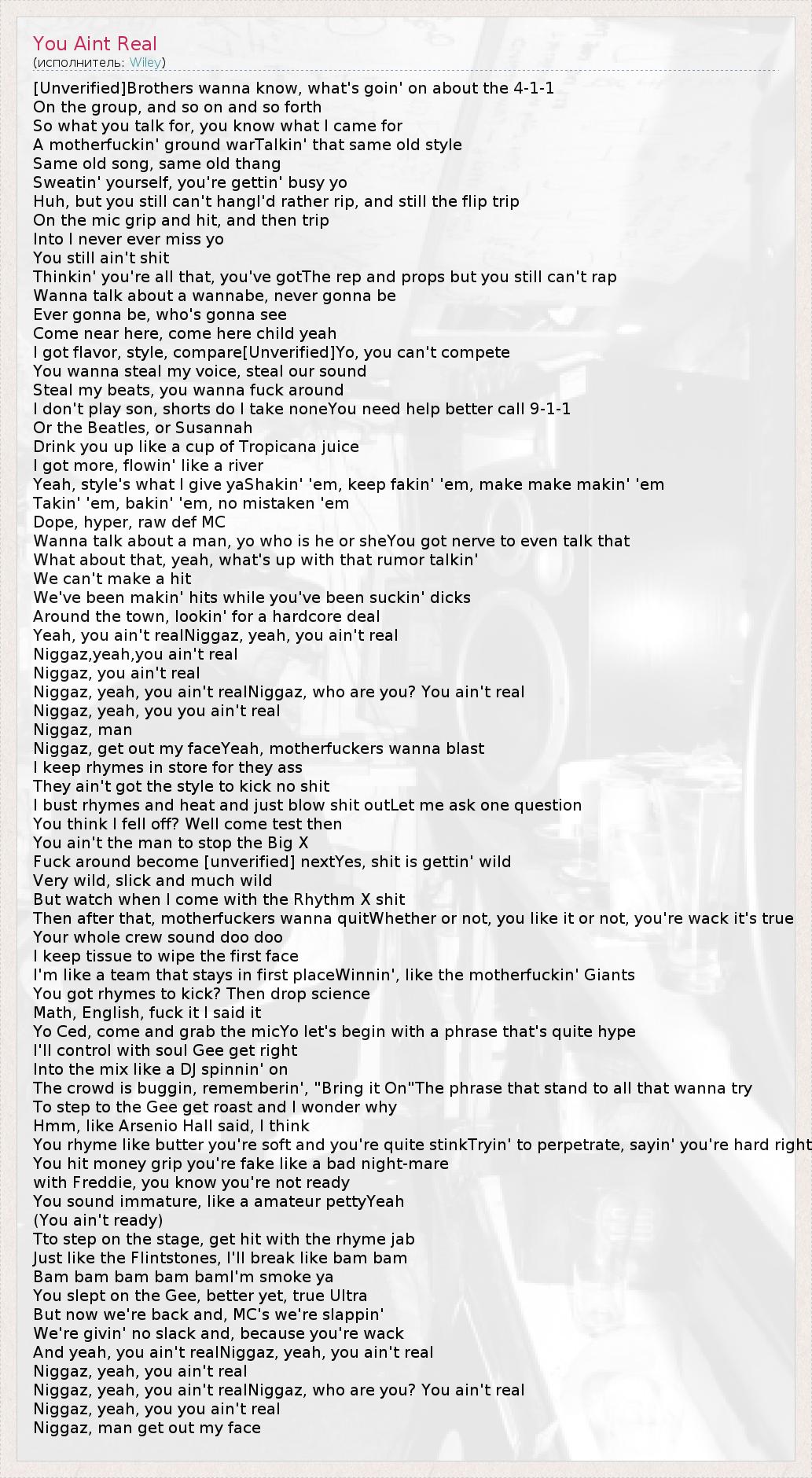 And yeah, you ain't realNiggaz, yeah, you ain't real