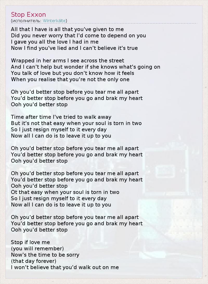 Тебе лучше остановиться, до того как ты уйдёшь и разобьёшь мне сердце