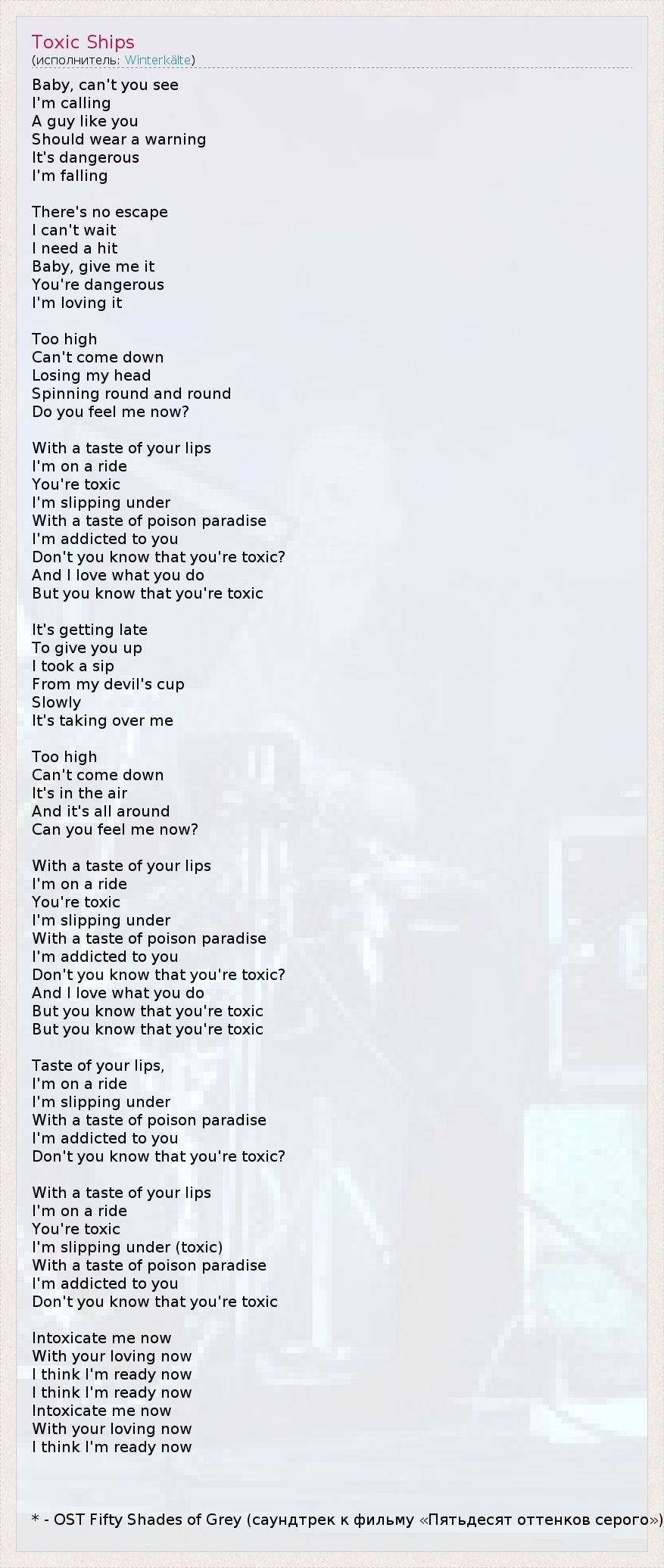 А как ты думаешь, о чем песня "Toxic Ships" ?