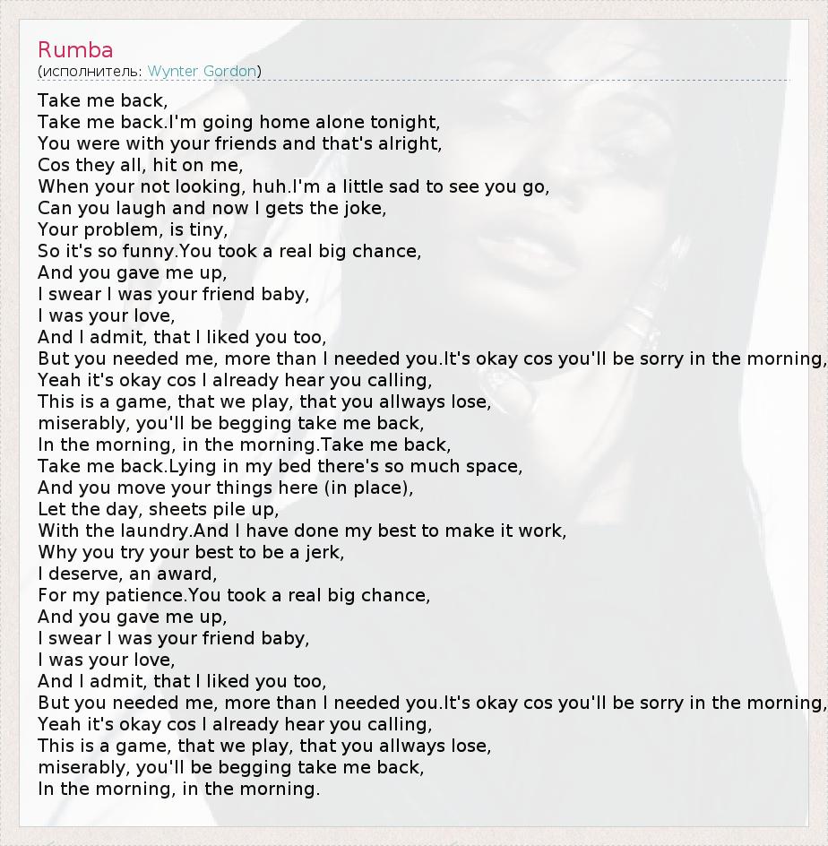 But you needed me, more than I needed you.It's okay cos you'll be sorry in the morning,