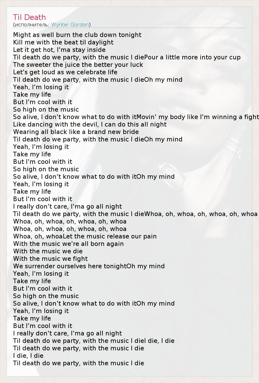 Til death do we party, with the music I dieWhoa, oh, whoa, oh, whoa, oh, whoa