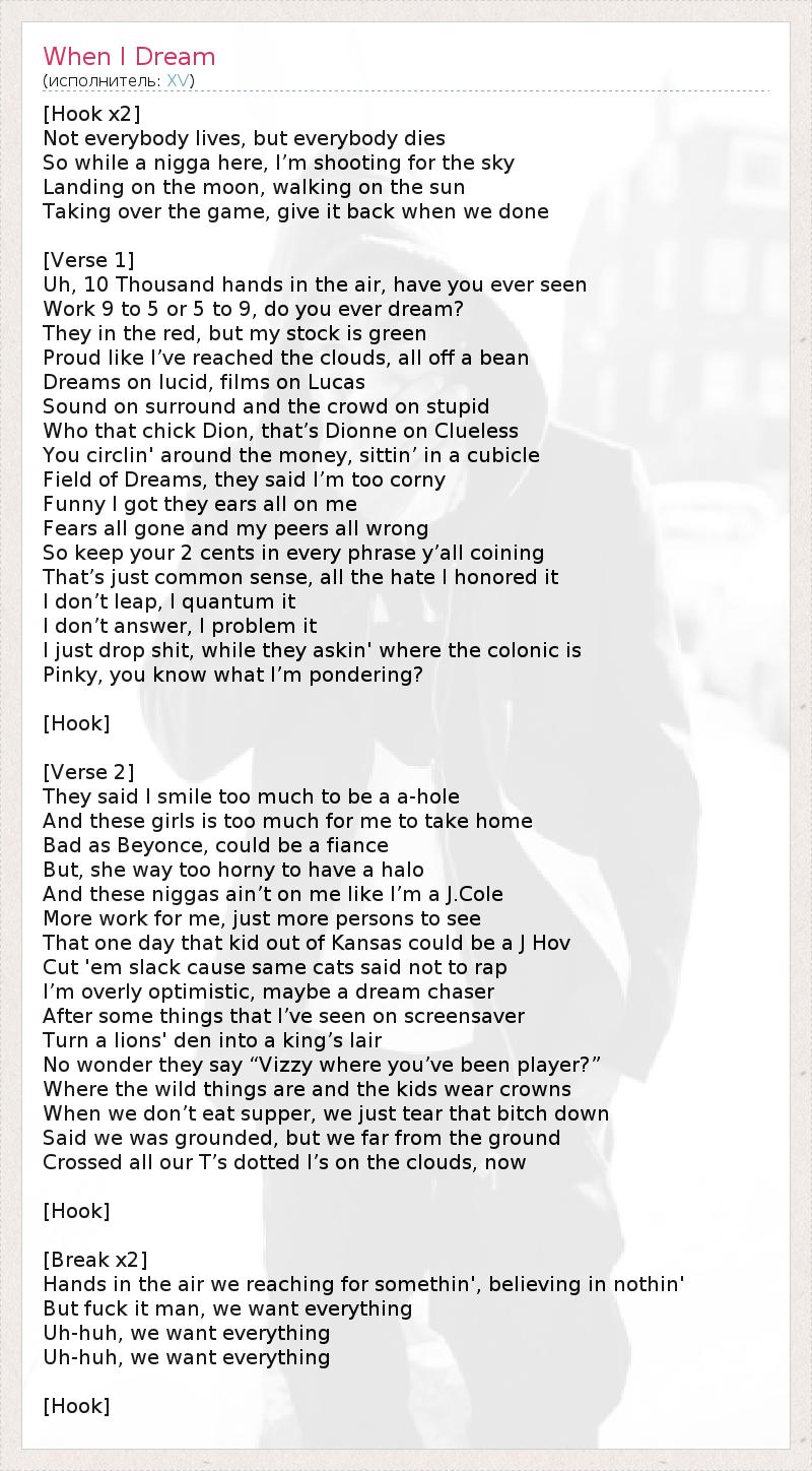 Это интересно:Donovan Johnson (born July 9, 1985) better known by his stage name XV is an American rapper, singer and songwriter from Wichita, Kansas. He first gained major attention after the release of his twelfth mixtape Everybody's Nobody. In which he received two awards from DJBooth.net.His name, XV, refers to the age (15) at which he began to create music. On Monday July 26, 2010, XV, announced that he signed a Recording contract with Warner Bros. Records via his Twitter page.