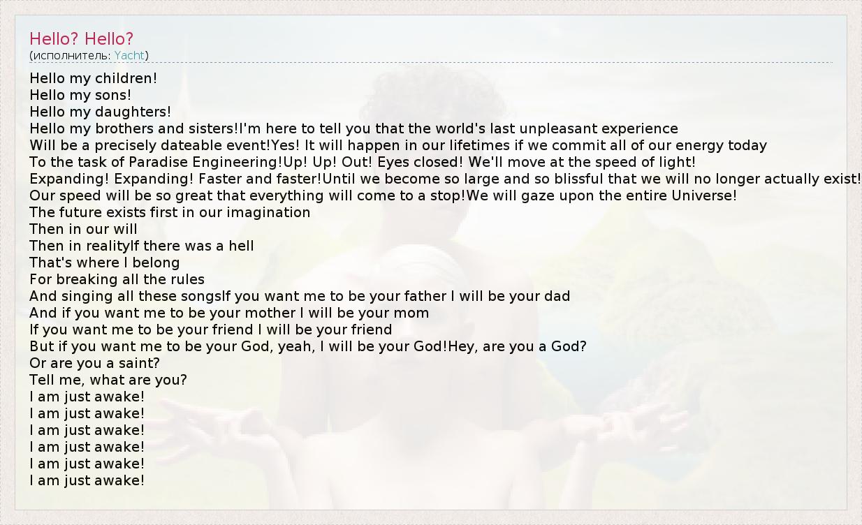А как ты думаешь, о чем песня "Hello? Hello?" ?