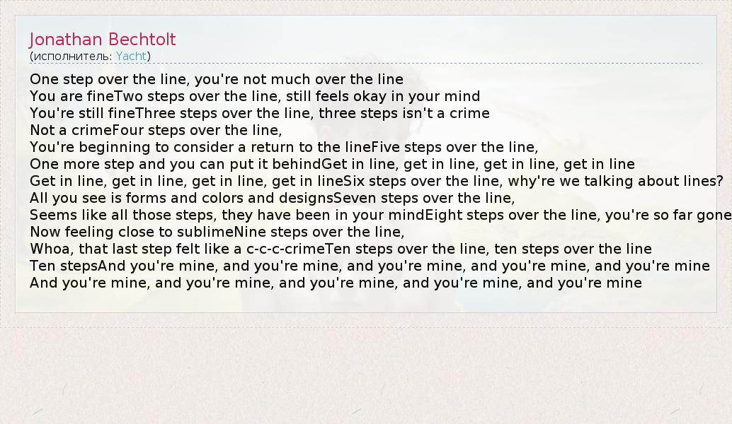 Whoa, that last step felt like a c-c-c-crimeTen steps over the line, ten steps over the line