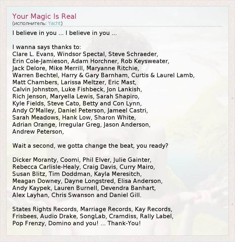 А как ты думаешь, о чем песня "Your Magic Is Real" ?