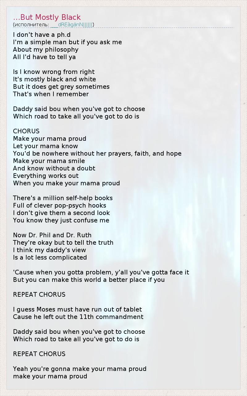 А как ты думаешь, о чем песня "...But Mostly Black" ?
