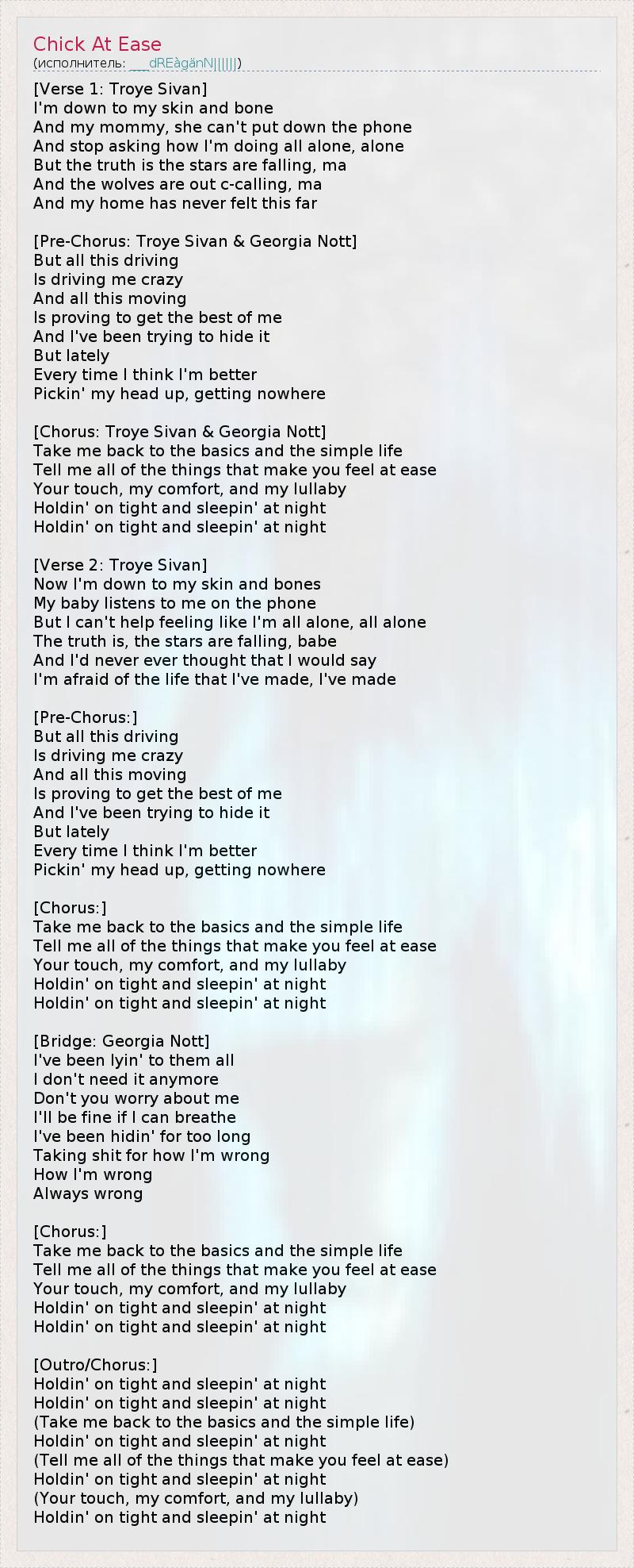А как ты думаешь, о чем песня "Chick At Ease" ?