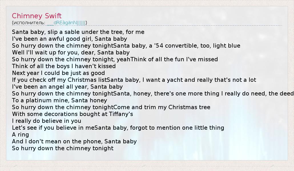 So hurry down the chimney tonight, yeahThink of all the fun I've missed