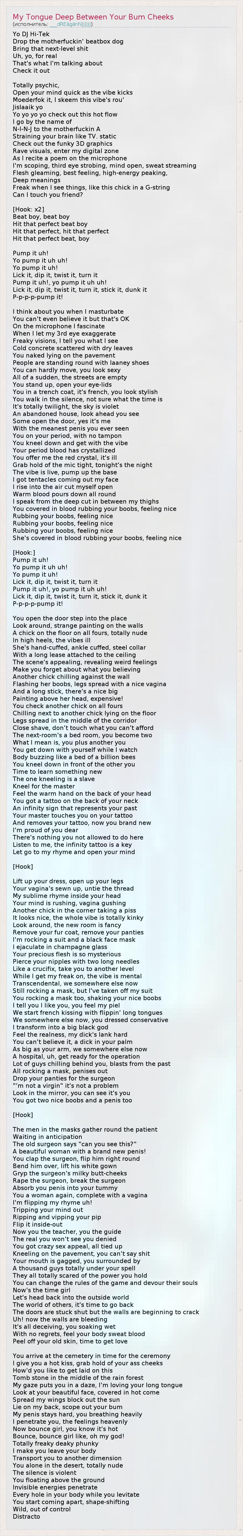 А как ты думаешь, о чем песня "My Tongue Deep Between Your Bum Cheeks" ?