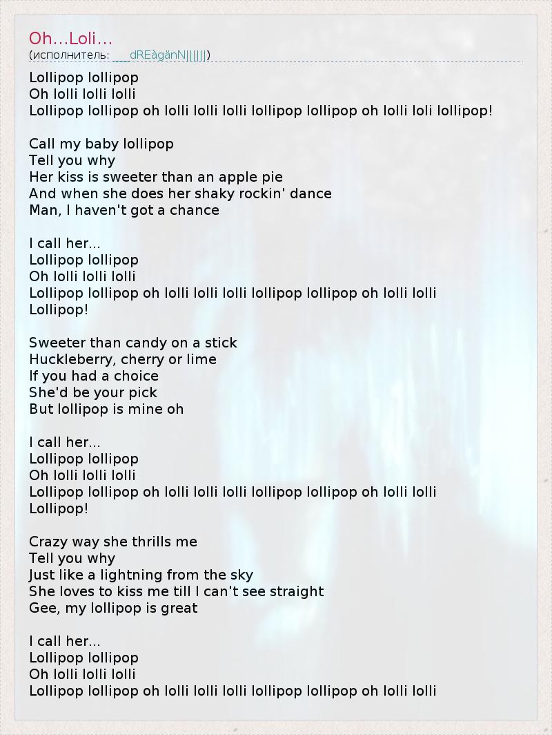 Lollipop lollipop oh lolli lolli lolli lollipop lollipop oh lolli lolli