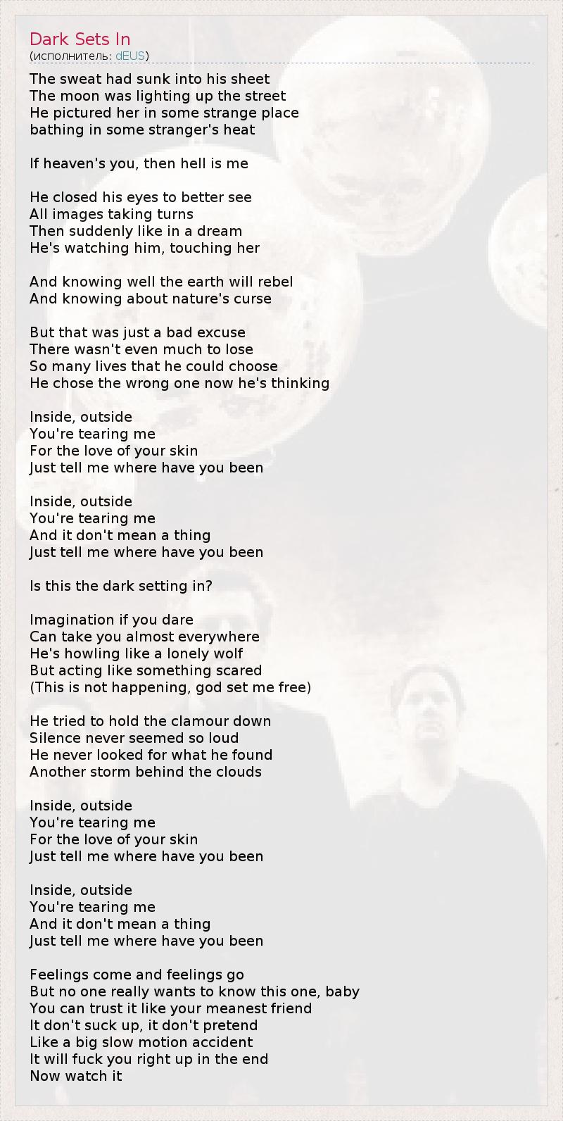 А как ты думаешь, о чем песня "Dark Sets In" ?