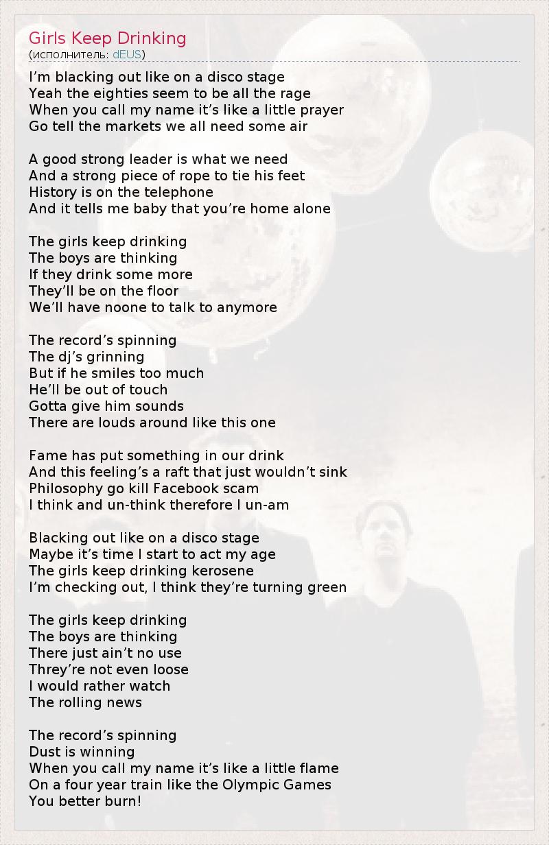 А как ты думаешь, о чем песня "Girls Keep Drinking" ?
