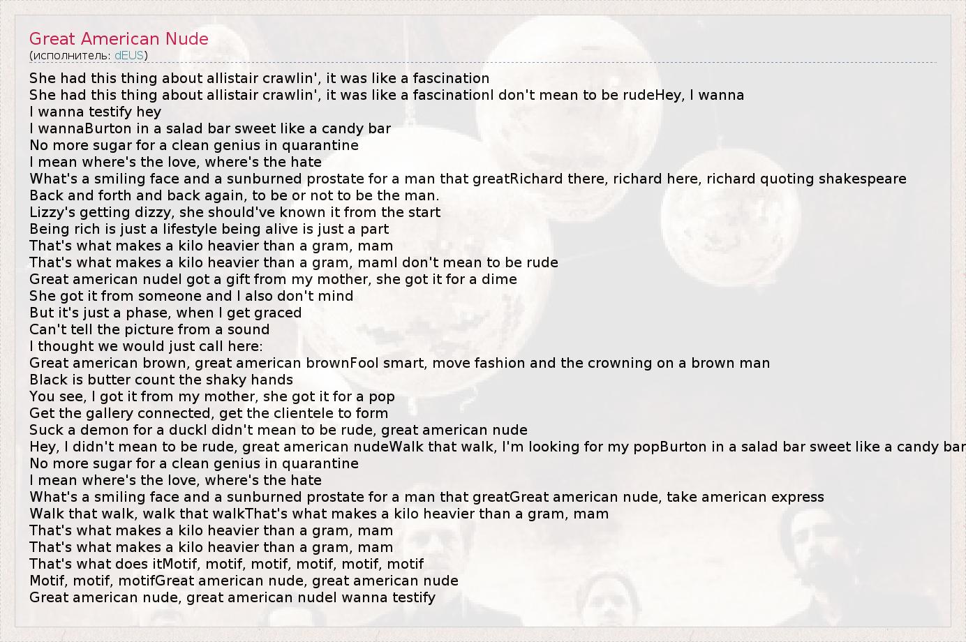 ГлавнаяИсполнителиdEUSGreat American Nude