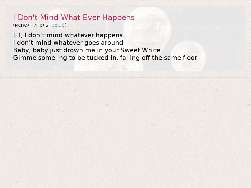 А как ты думаешь, о чем песня "I Don't Mind What Ever Happens" ?