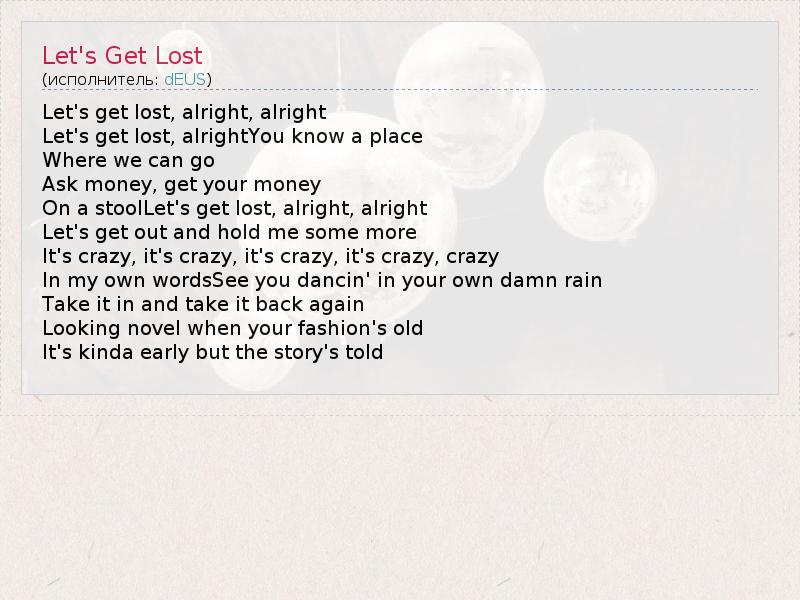 А как ты думаешь, о чем песня "Let's Get Lost" ?