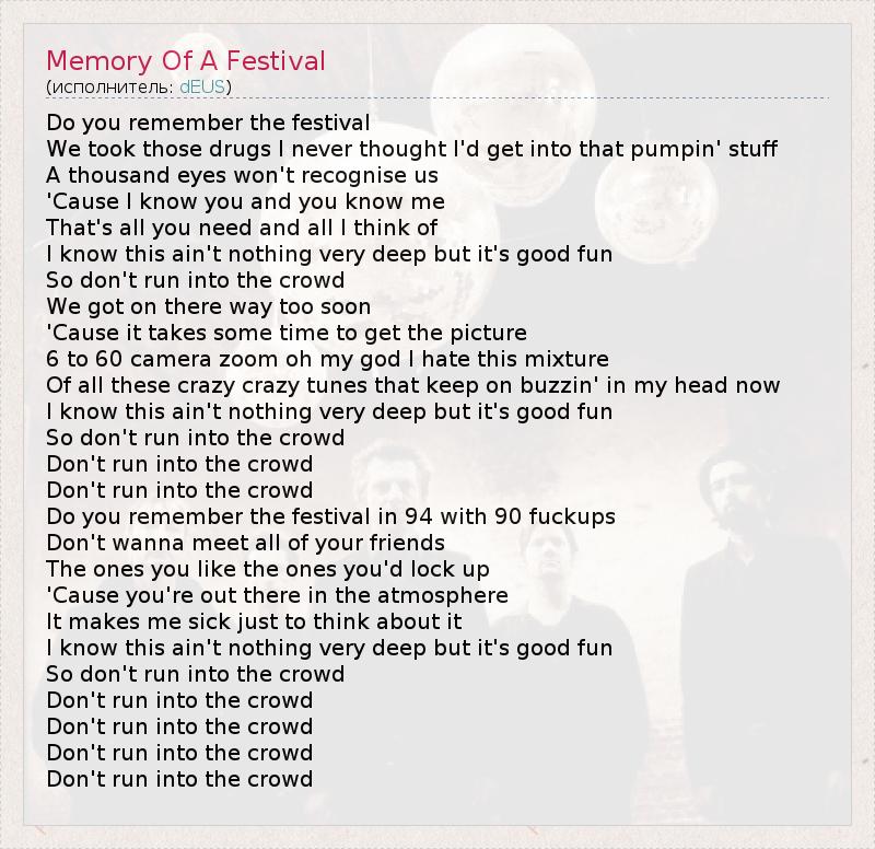 А как ты думаешь, о чем песня "Memory Of A Festival" ?