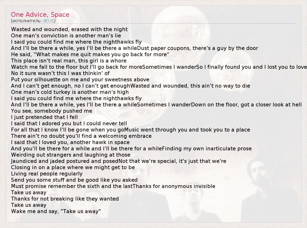 А как ты думаешь, о чем песня "One Advice, Space" ?