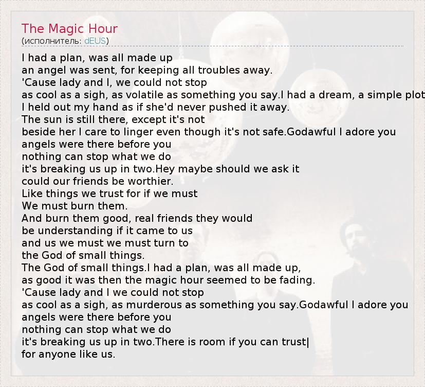 А как ты думаешь, о чем песня "The Magic Hour" ?