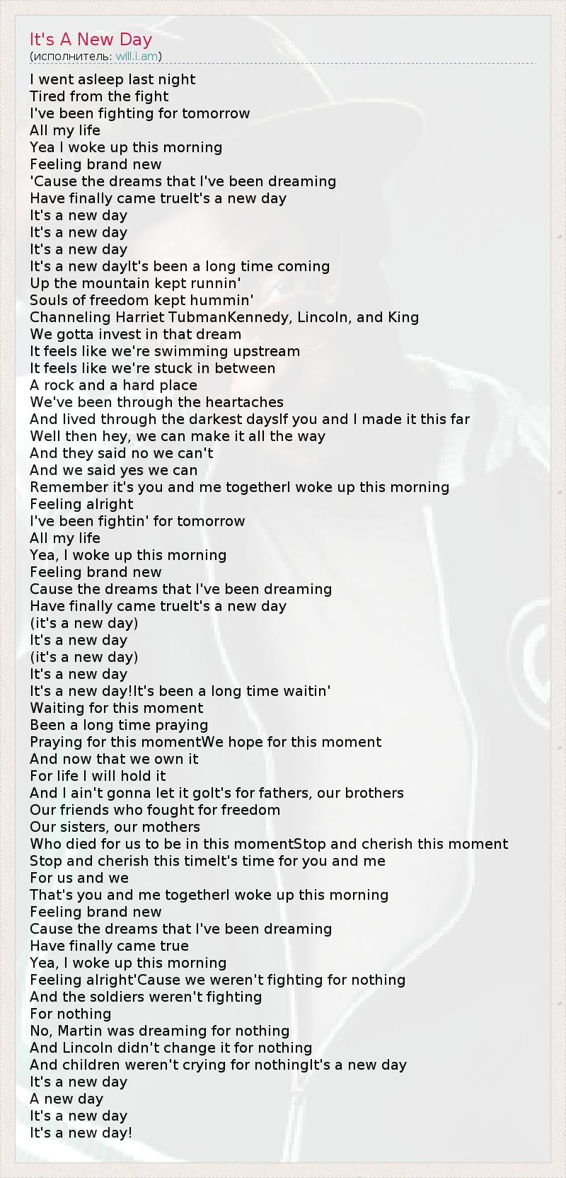 А как ты думаешь, о чем песня "It's A New Day" ?