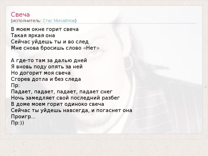А как ты думаешь, о чем песня "Свеча" ?