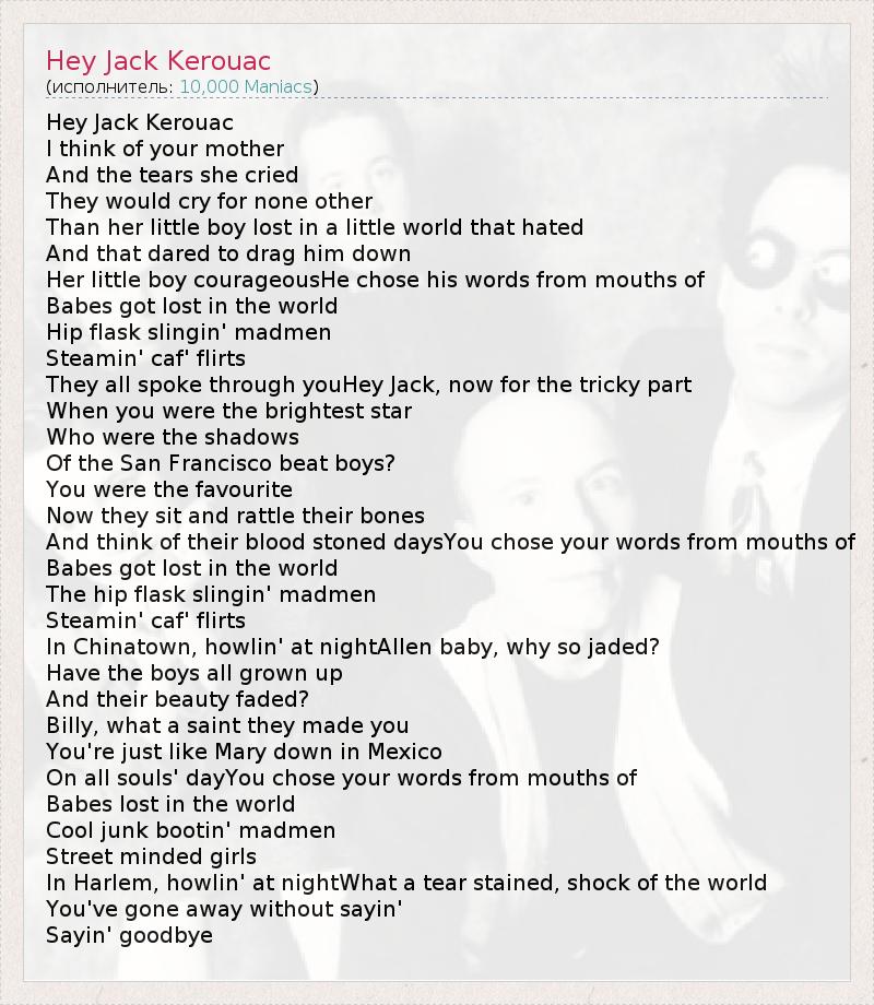 А как ты думаешь, о чем песня "Hey Jack Kerouac" ?
