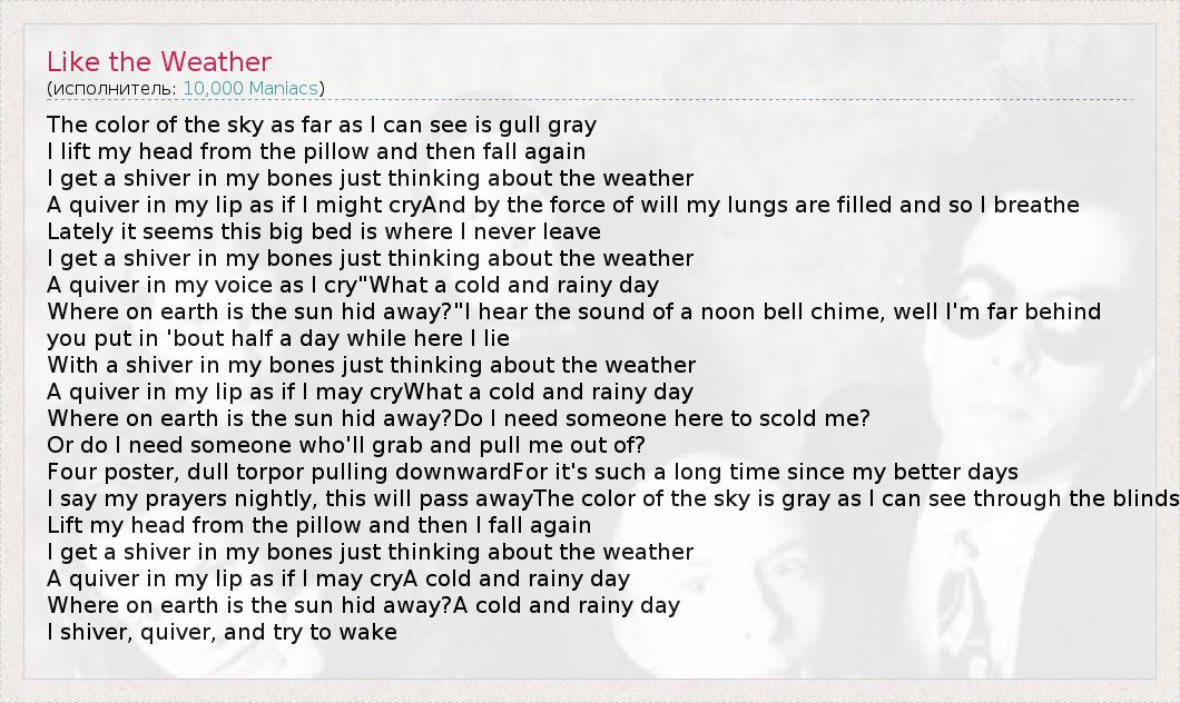 А как ты думаешь, о чем песня "Like the Weather" ?