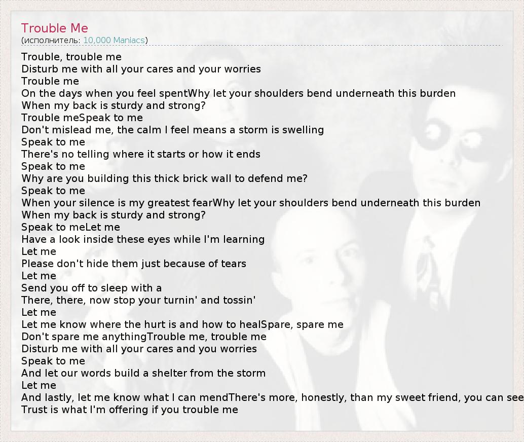 А как ты думаешь, о чем песня "Trouble Me" ?