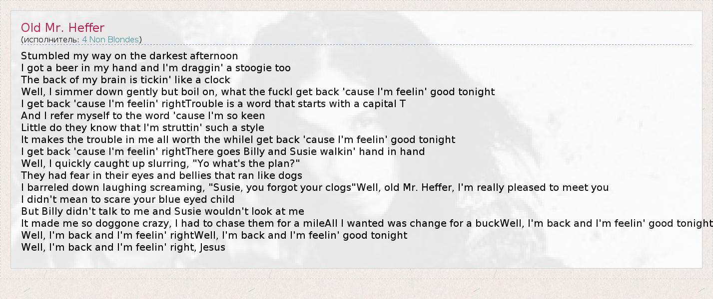 А как ты думаешь, о чем песня "Old Mr. Heffer" ?