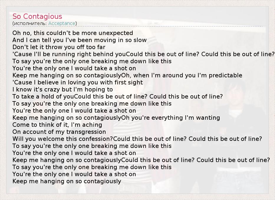 А как ты думаешь, о чем песня "So Contagious" ?