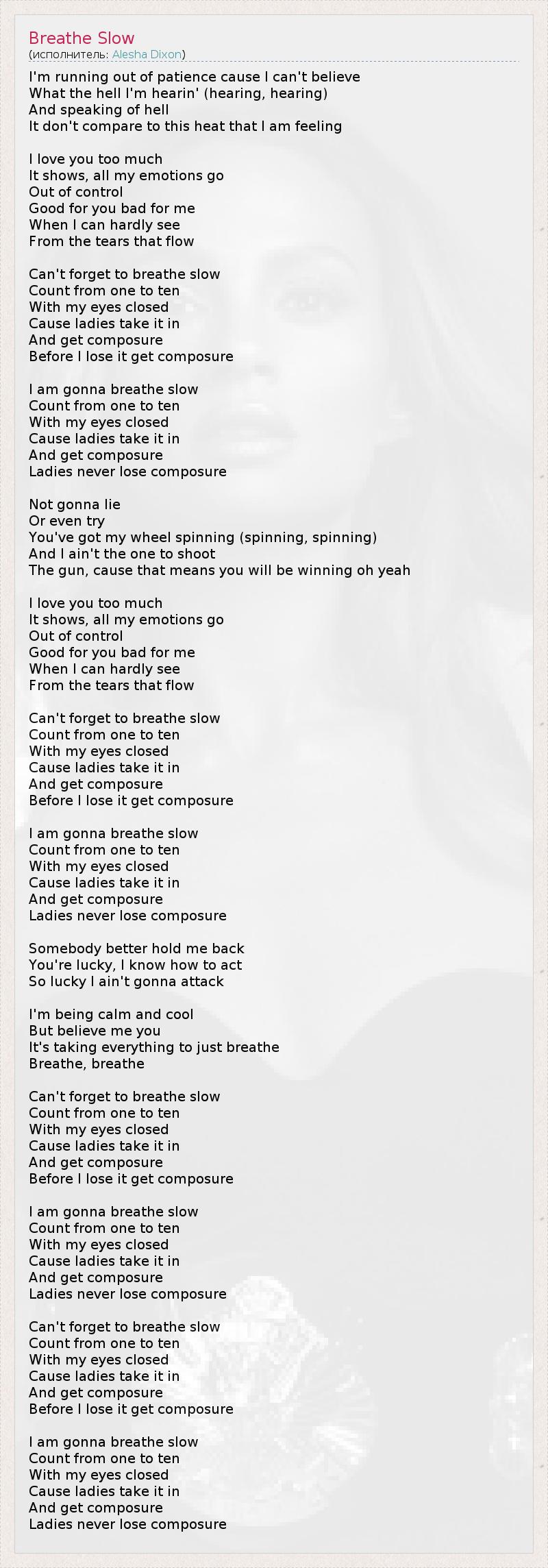 А как ты думаешь, о чем песня "Breathe Slow" ?