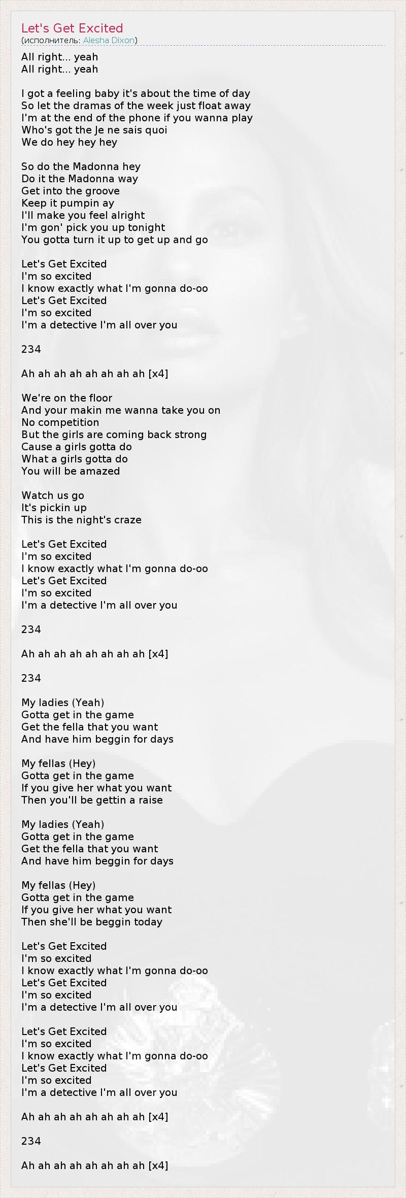А как ты думаешь, о чем песня "Let's Get Excited" ?