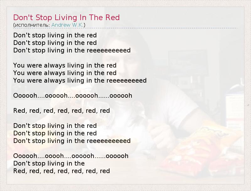 А как ты думаешь, о чем песня "Don't Stop Living In The Red" ?