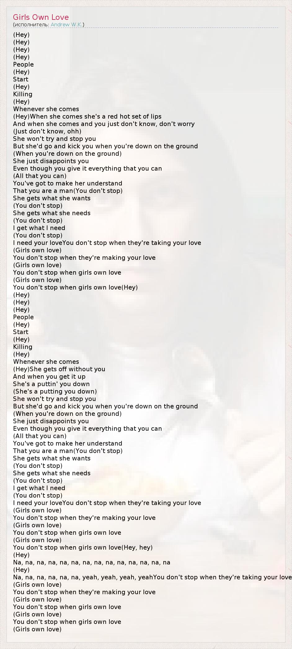 А как ты думаешь, о чем песня "Girls Own Love" ?