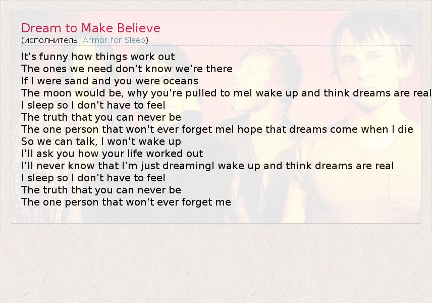 А как ты думаешь, о чем песня "Dream to Make Believe" ?