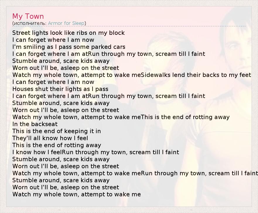 Watch my whole town, attempt to wake meSidewalks lend their backs to my feet