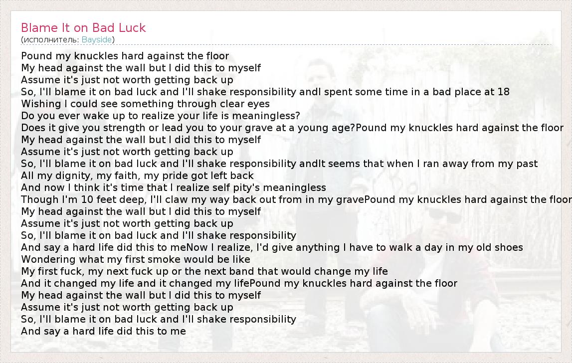 ГлавнаяИсполнителиBaysideBlame It on Bad Luck
