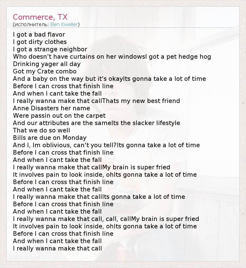 А как ты думаешь, о чем песня "Commerce, TX" ?