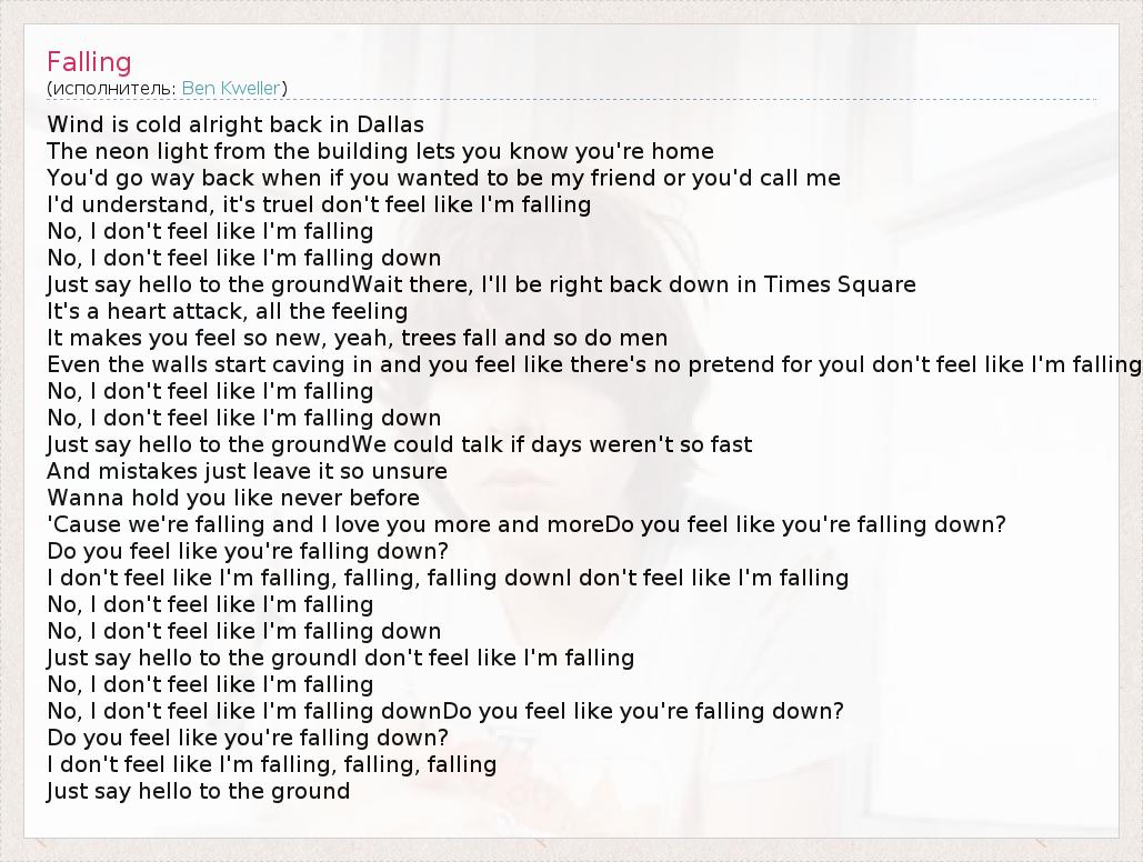 I don't feel like I'm falling, falling, falling downI don't feel like I'm falling