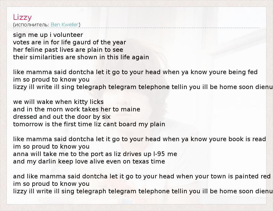 А как ты думаешь, о чем песня "Lizzy" ?