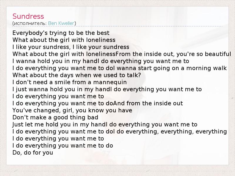 А как ты думаешь, о чем песня "Sundress" ?