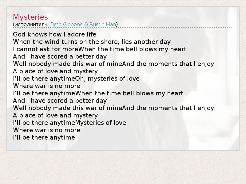 Это интересно:Бет Гиббонс (Beth Gibbons) - магический голос Portishead, чьи заслуги в области музыки, запечатленные на альбоме "Dummy", принесли группе в 1994 году премию Mercury и любовь всех странных людей мира. Однако, дальше уже с самой группой начало происходить нечто странное: еще один альбом, потом концертник - и затишье в семь лет длиной.... продолжение