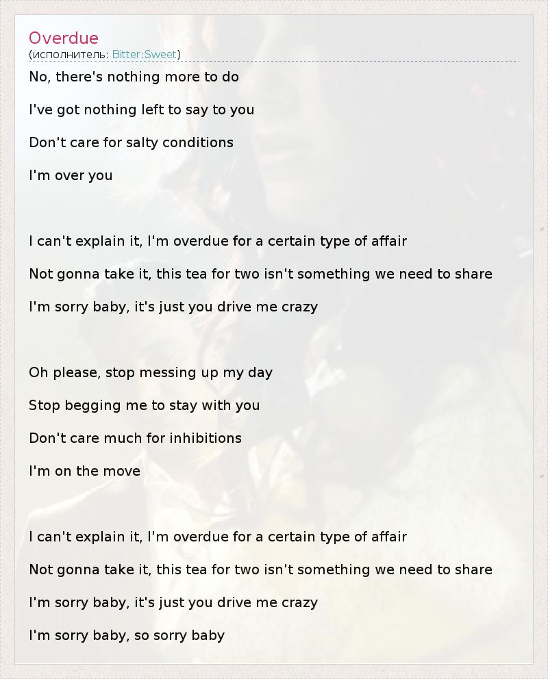 А как ты думаешь, о чем песня "Overdue" ?