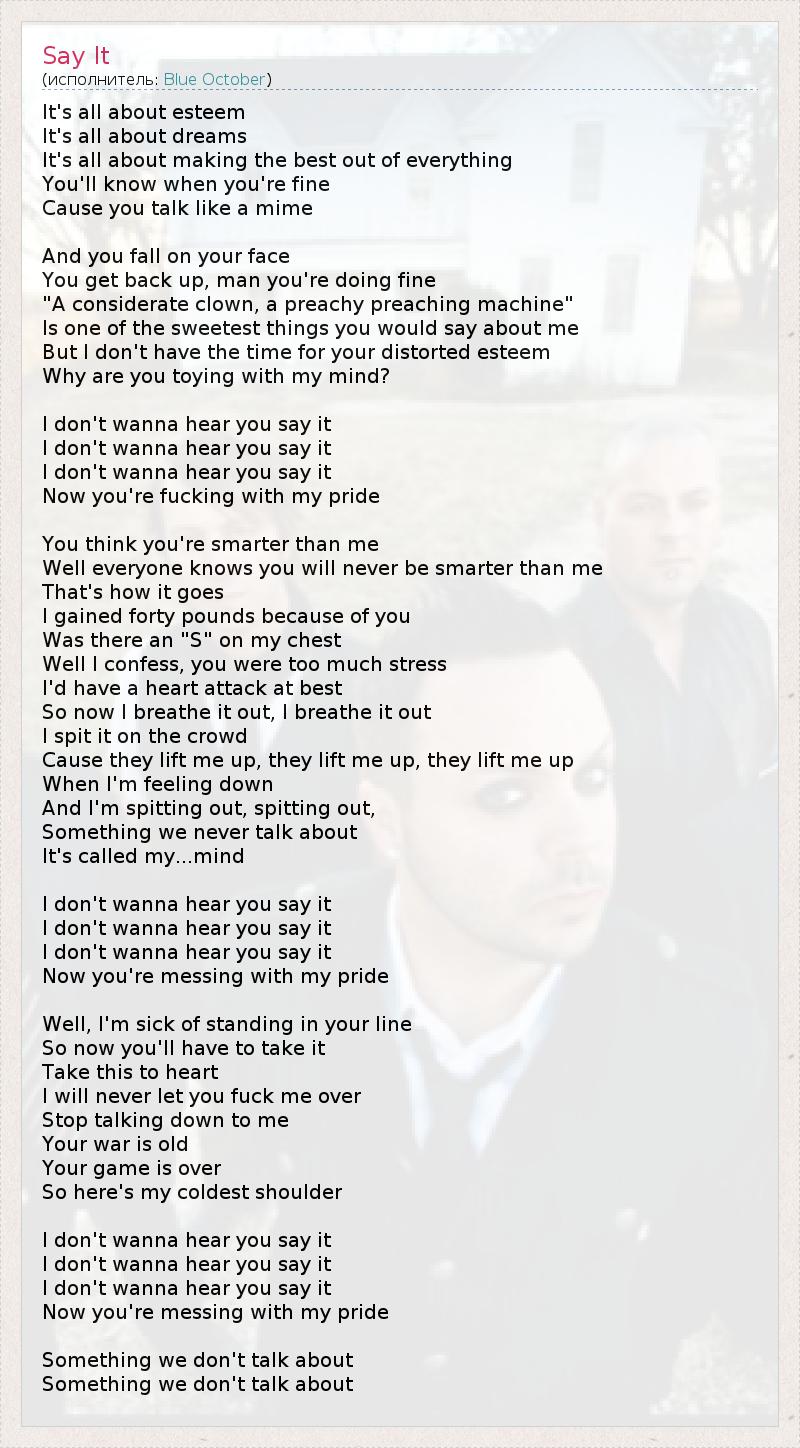 Вторым синглом с альбома стала песня Say It, которая вышла 24 апреля 2009 года.