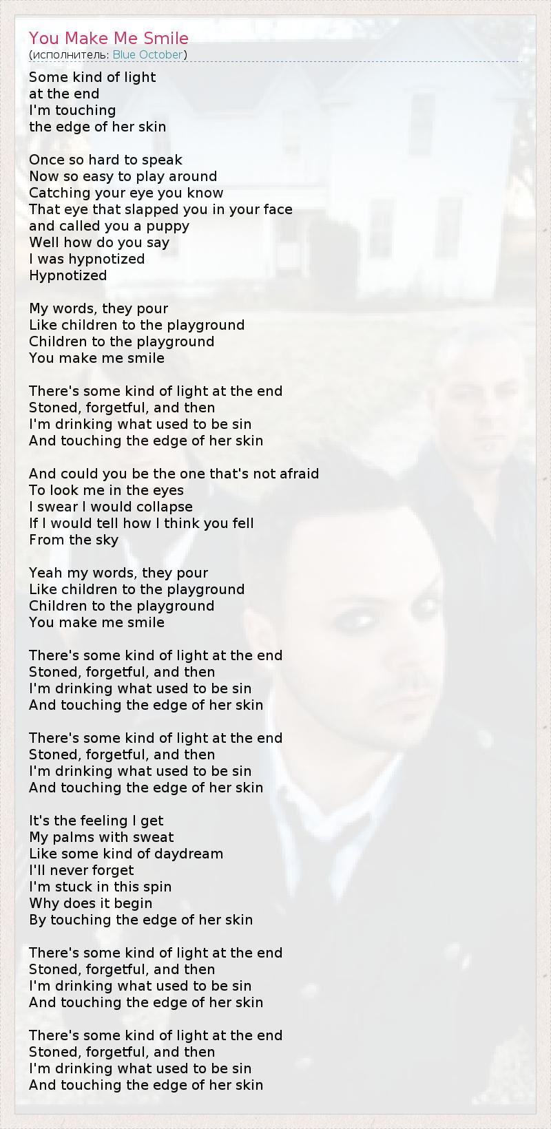 Перевод песни Blue October - You Make Me Smile Ты заставляешь меня улыбаться