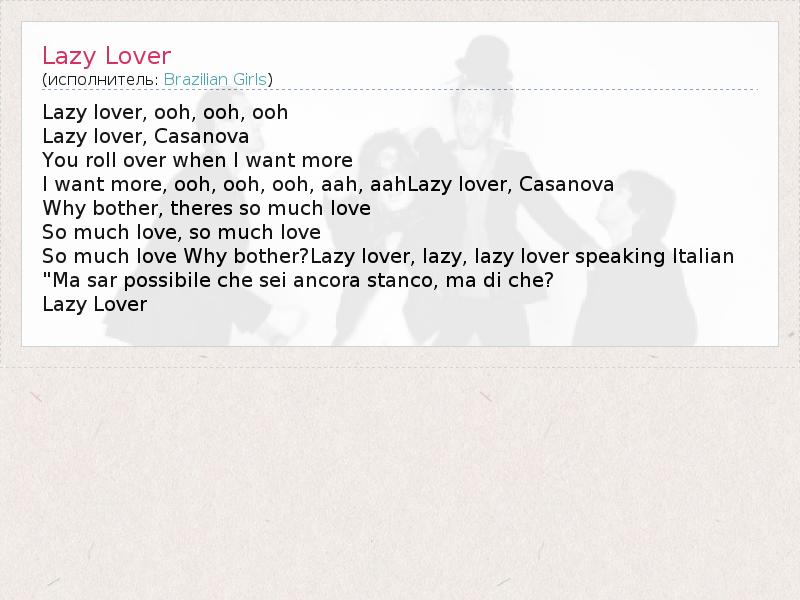 А как ты думаешь, о чем песня "Lazy Lover" ?