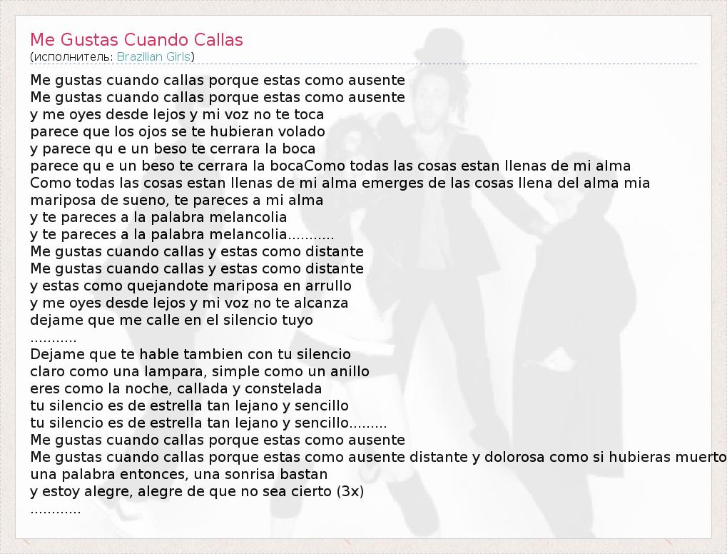 А как ты думаешь, о чем песня "Me Gustas Cuando Callas" ?