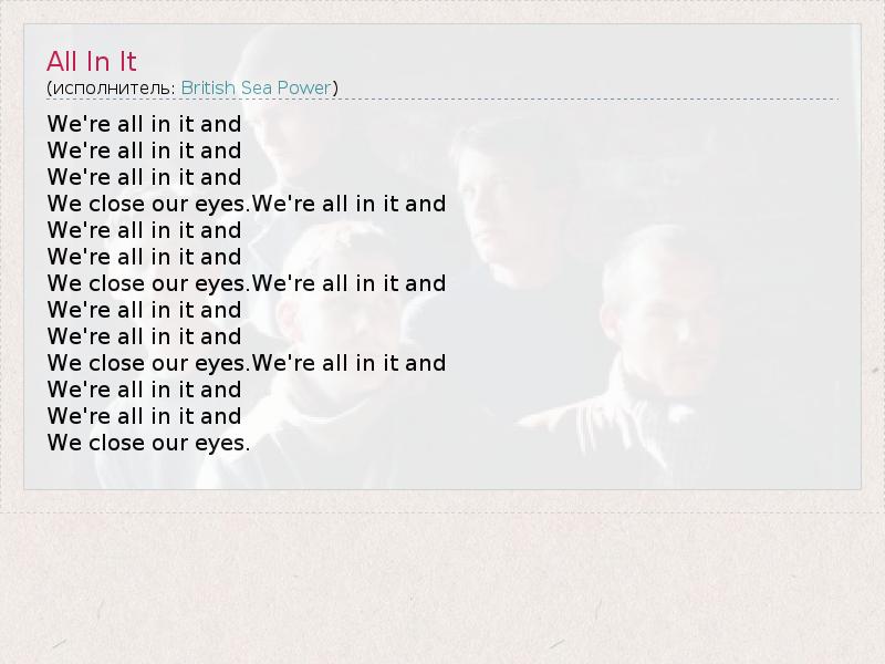 Это интересно:Группа British Sea Power была основана в 2000 году в Брайтоне. В этом же году вышла первая запись группы - сингл Fear of Drowning . Взлет популярности произошел сразу после выхода дебютного альбома The Decline of British Sea Power в 2003 году, в этом же году Sunday Times назвала British Sea Power лучшей группой Великобритании. Сочетание музыки в стиле арт-рок и оригинальных текстов с потрясающими живыми выступлениями делают British... продолжение