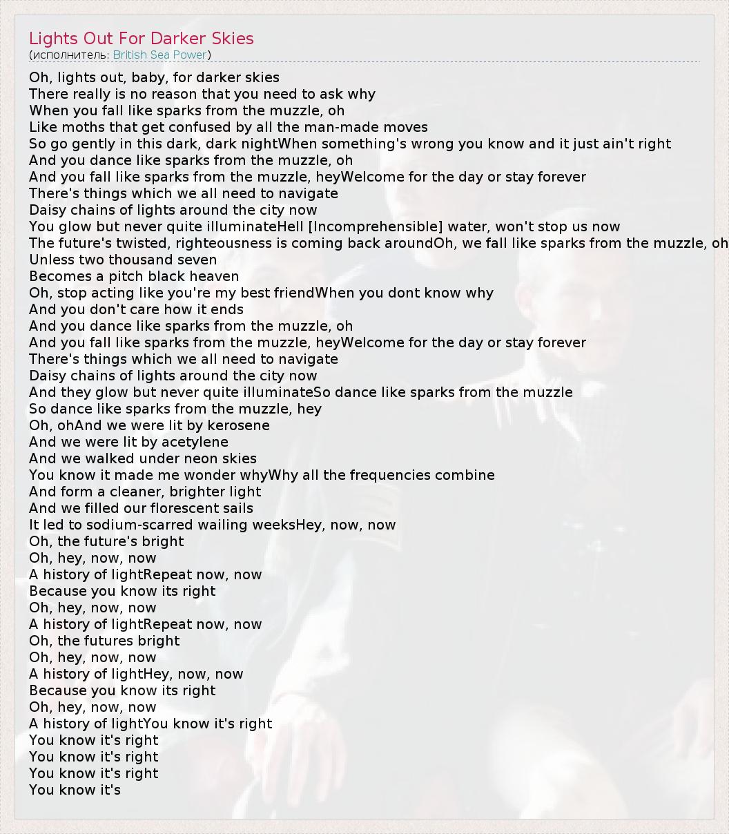 А как ты думаешь, о чем песня "Lights Out For Darker Skies" ?