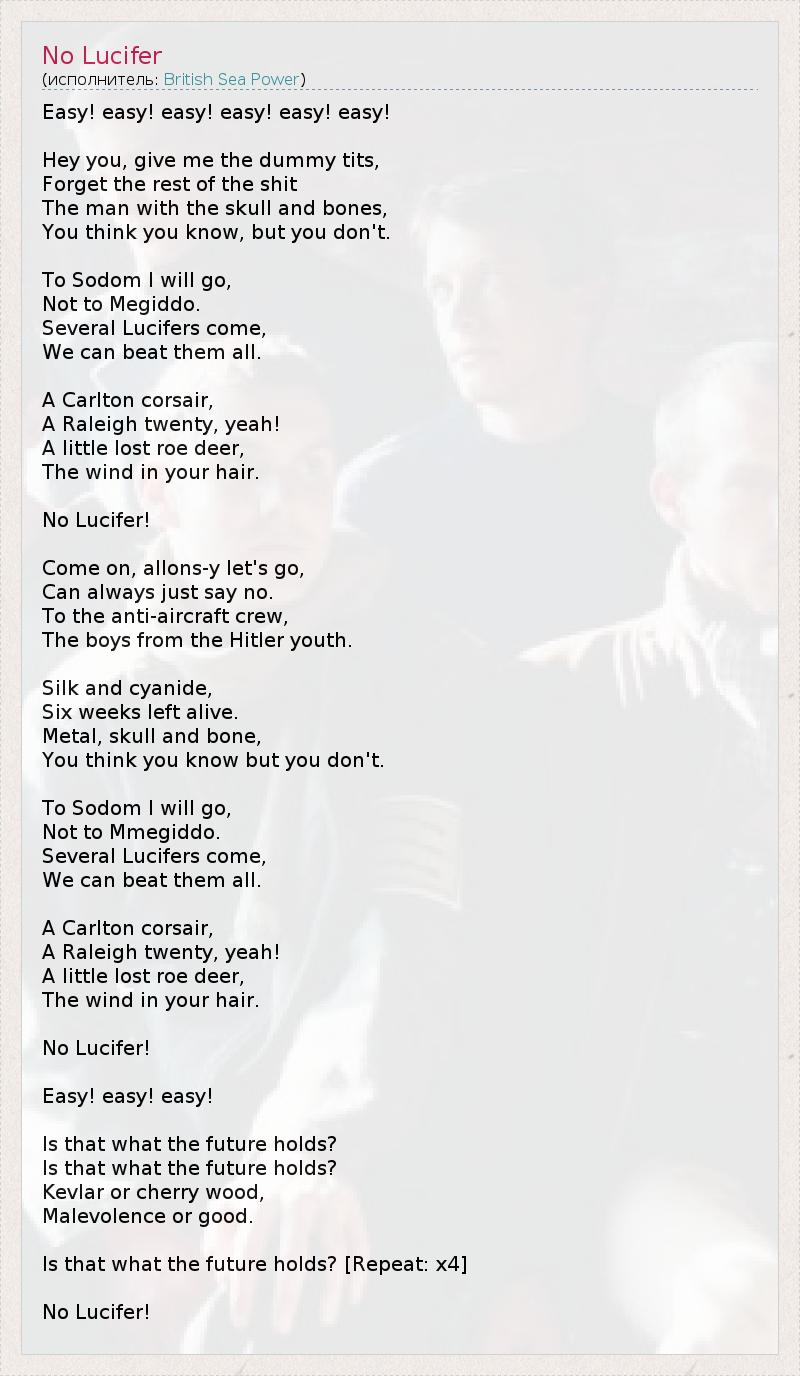 А как ты думаешь, о чем песня "No Lucifer" ?